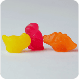 Options with or without sugar, using a variety of base ingredients, such as gelatin, pectin, and starch. Available in multiple forms including jelly beans and chews.